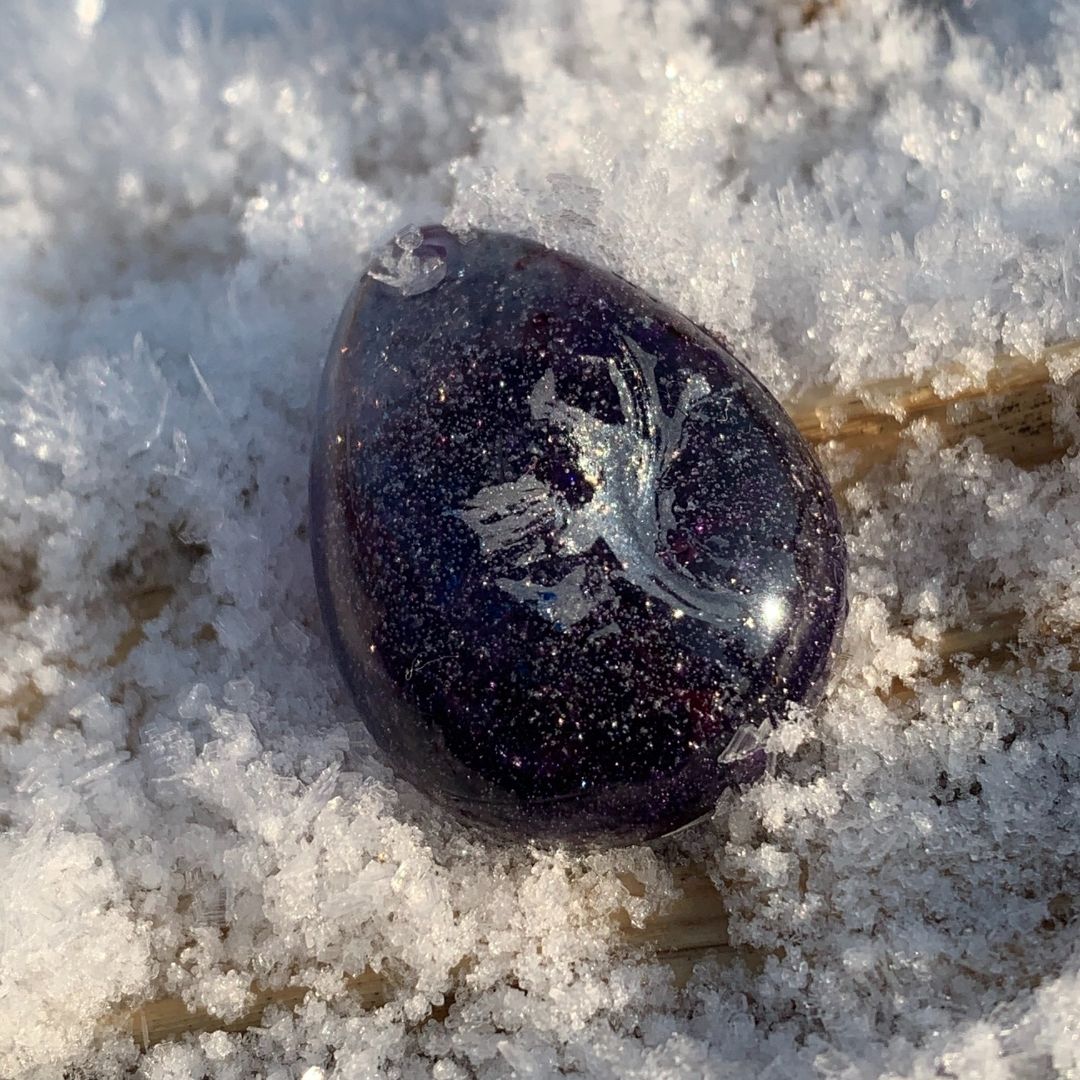 💎 Żywica, z której wykonałam ten wisior jest leciutka, przyjemna w dotyku, o pięknej błyszczącej fakturze. Jest twarda, ale nie musisz się obawiać, że się potłucze czy pokruszy, nawet jeśli zdarzy Ci się upuścić wisiorek.