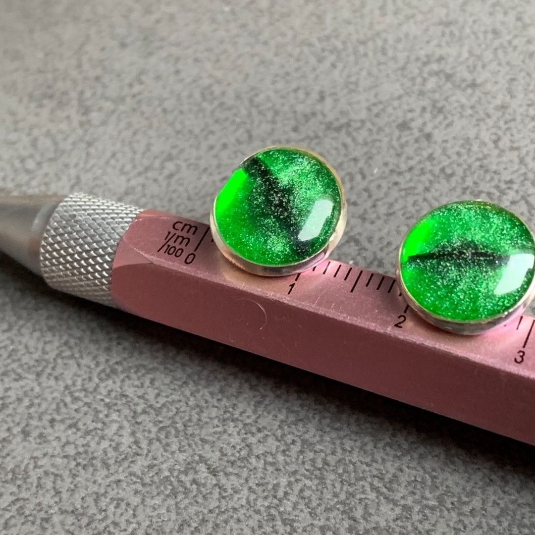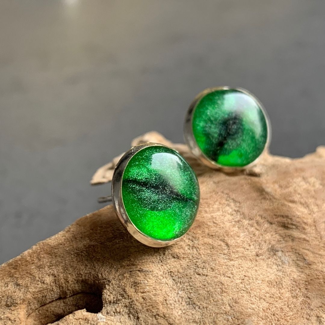 Kolczyki inspirowane oczami kota. Spojrzysz w nie i się zakochasz 🙂 Lekkie, ręcznie wylewane, migotliwe i radosne.