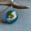 Wykonany z żywicy jubilerskiej na metalowej zawieszce.