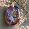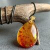 Wisior wykonany z żywicy jubilerskiej na metalowej zawieszce.