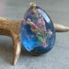 Wisior z żywicy jubilerskiej z zatopionymi naturalnymi kwiatami. Z dołączonym ozdobnym sznurem – gotowy do noszenia!