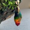 Maleńki wisiorek w kolorach tęczy 🌈 na zawieszce w kolorze srebra. Na bazie naturalnego listka pomalowanego i zatopionego w żywicy. Leciusieńki, drobniutki, migotliwy. Bo tęczowy 🌈 to najpiękniejszy kolor na świecie!