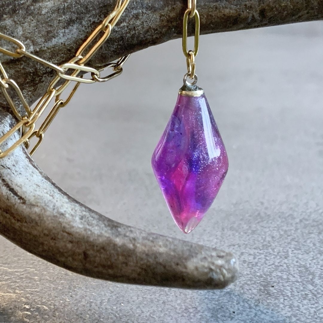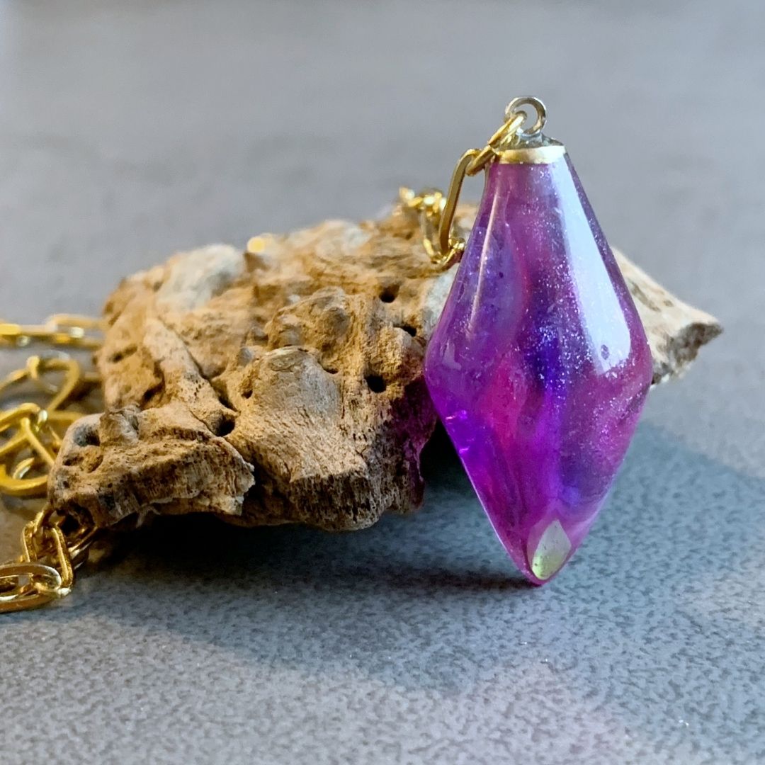 💎 Żywica, z której wykonałam ten wisior jest leciutka, przyjemna w dotyku, o pięknej błyszczącej fakturze. Jest twarda, ale nie musisz się obawiać, że się potłucze czy pokruszy, nawet jeśli zdarzy Ci się upuścić wisiorek.