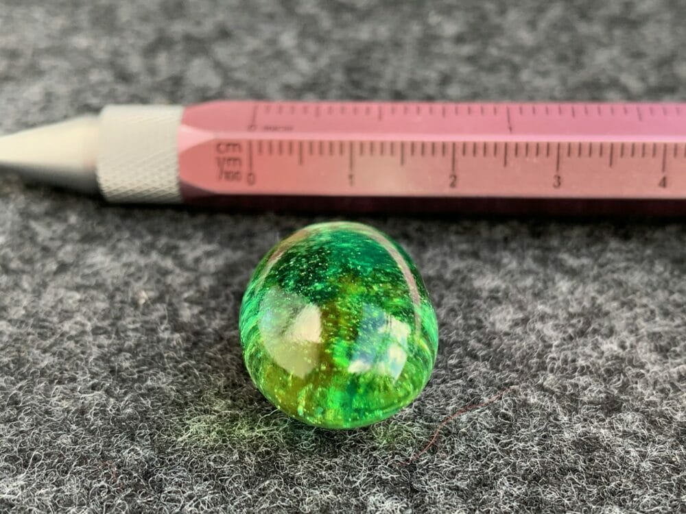 Jego unikalność pochodzi też z działania sił przypadku i natury. Kolory i światło w wisiorku tańczą swój własny taniec, który tworząc jestem w stanie przewidzieć tylko częściowo. I nawet gdybym chciała nie udałoby mi się odtworzyć tej gry kolorów i światła, którą tu widzisz. Kupując ten drobiazg możesz mieć pewność, że nikt, absolutnie nikt nie będzie miał nigdy drugiego takiego.