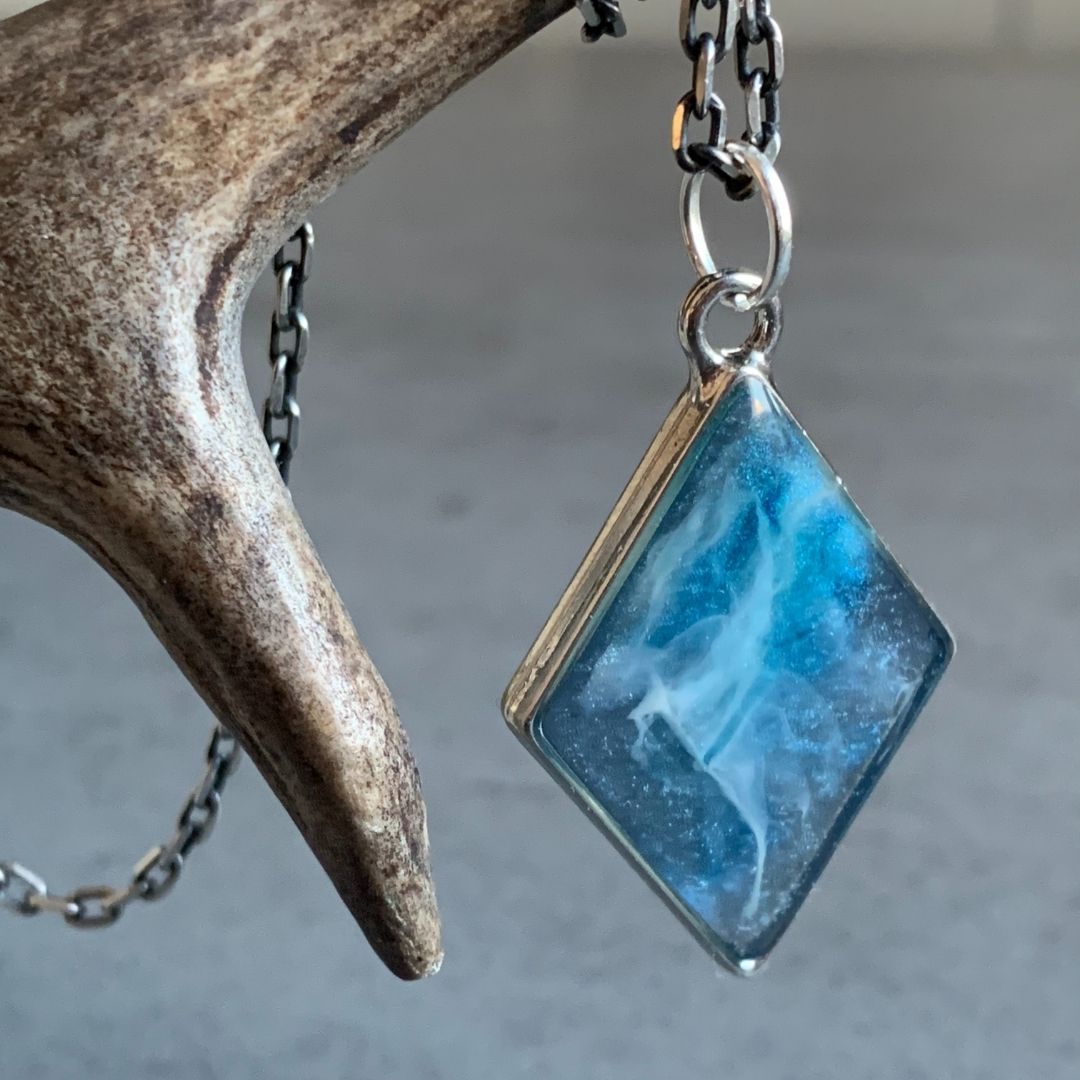 💎 Żywica, z której wykonałam ten wisior jest leciutka, przyjemna w dotyku, o pięknej błyszczącej fakturze. Jest twarda, ale nie musisz się obawiać, że się potłucze czy pokruszy, nawet jeśli zdarzy Ci się upuścić wisiorek.